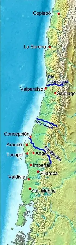 - ^ a b c d e (in Spanish) Villalobos, Sergio; Retamal Ávila, Julio and Serrano, Sol. 2000. Historia del pueblo Chileno. Vol 4. p. 154.