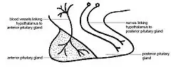 George Oliver and Edward Albert Schafer were among the first researchers to document its endocrine functions.[72] In the first two decades of the 20th century, however, a number of conflicting reports on the diuretic versus anti-diuretic properties of the pituitary extract caused confusion in the field.[73][74] A general agreement was reached that some of the results that reported diuresis was due to increased pressure and blood flow to the kidney, while the posterior pituitary extract had an antidiurectic effect.[75] By the 1920s, accumulated findings defined diabetes insipidus as a disorder of the pituitary.[25]