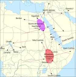 Throughout the 1990s and 2000s, researchers attempted to reconstruct the Proto-Afroasiatic language, suggesting it likely arose between 18,000 and 12,000 years ago in the Levant, suggesting that it may have descended from the Natufian culture and migrated into Africa before diverging into different languages.[3][4]