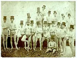 In rivers, lakes, streams and the sea, men swam in the nude, where the practice was common. Those who did not swim in the nude, stripped to their underwear.