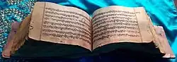 A photo of the Charitropakhyan Pothi (volume of pages) in the hand of Guru Gobind Singh from the 18th Century