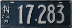 1924–25 | Embossed white serial on dark blue plate with border line; "NC" monogram and "6-30 25" at left | none | 123.456 | 1 to approximately 320.000 | |