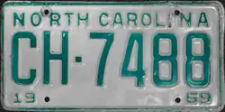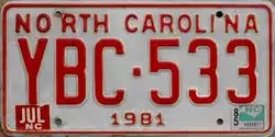 - ^ a b c d e Tanner, Eric N. "North Carolina Passenger License Plates". allaboutlicenseplates.com. Retrieved November 19, 2020.