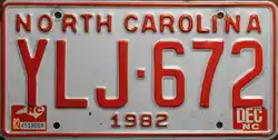 - ^ a b c "North Carolina License Plates". www.licenseplates.cc. Retrieved July 3, 2023.