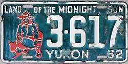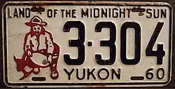 - ^ Tanner, Eric N. "Yukon Passenger License Plates". allaboutlicenseplates.com. Retrieved November 22, 2020.