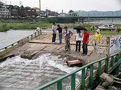 From July to November, fishermen erect bamboo fish traps in the Mikuma River to capture ayu fish, which are covered in salt and grilled.
