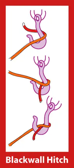 | Blackwall hitch | A temporary means of attaching a rope to a hook. |
