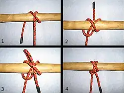 | Clove hitch | A clove hitch is two successive half-hitches around an object. |