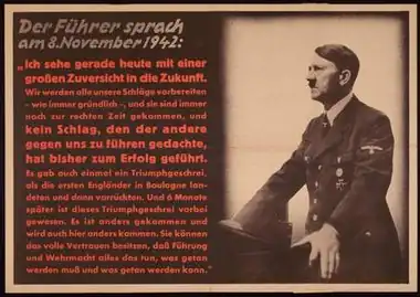 Hitler's Stalingrad speech was an address made by Nazi leader Adolf Hitler to senior members of the Nazi Party on 8 November 1942. The speech took place at the Löwenbräukeller in Stiglmaierplatz in Munich during the height of the Battle of Stalingrad.