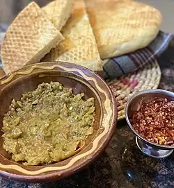 Hmiss (Arabic: حميص) or ifelfel, meaning "chilli pepper" in Kabylia,[1][2][3] or felfla[4] and chlita in the region of Oran, is a traditional Algerian salad made from grilled peppers and tomatoes, chopped, mixed and seasoned with olive oil.[5][6] The word "hmiss" means sauté in Algerian Arabic, because the vegetables have to be sautéd after grilling.[7][8]