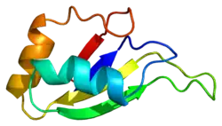 Heterogeneous nuclear ribonucleoprotein D0 (HNRNPD) also known as AU-rich element RNA-binding protein 1 (AUF1) is a protein that in humans is encoded by the HNRNPD gene.[5][6] Alternative splicing of this gene results in four transcript variants.