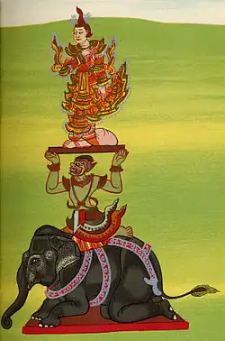 Hnamadawgyi (Burmese: နှမတော်ကြီး, pronounced [n̥əma̰dɔ̀dʑí]; lit. 'Royal Sister'; also known as Shwemyethna; Burmese: ရွှေမျက်နှာ) is one of the 37 nats in the Burmese pantheon of nats. She is the nat representation of Myat Hla, sister of Maung Tint De. According to tradition, she was a queen of the King of Tagaung. When she saw her brother Tintde being burned alive, she leapt into the fire, but only managed to save his head. She died of her burns and became a nat. She is portrayed standing on a dais upon a black elephant, her right hand on her chest with a plum between her thumb and index finger, and her left hand by her side.[1] She is also known for having a monkey companion, Shwe Min Wun.[2]