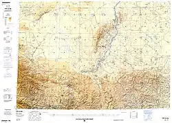 Yinchuan lies in the middle of the Yinchuan Plain.[21] It is sheltered from the deserts of Mongolia by the high ranges of the Helan Mountains to its west. The Yellow River runs through Yinchuan from southwest to northeast. The average elevation of Yinchuan is 1,100 meters (about 3,608 feet). The urban center of Yinchuan lies about halfway between the Yellow River and the edge of Helan Mountains.