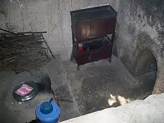 The Hoàng Cầm stove, named after its inventor, Hoàng Cầm, the chef, a Viet Minh soldier in 1951, was a stove intake and chimney system which diffused and dissipated smoke from cooking which prevented aerial detection of smoke by American military planes. They were used extensively in the Cu Chi tunnels and other hideouts.[1][2] Another name for the cooker was the "guitar stove". The system required a deep, covered hole in the ground from which long underground bamboo vents dissipated the smoke.[3][4]