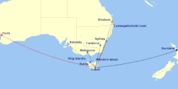 | Qantas | Melbourne, Sydney Seasonal: Perth[42] |