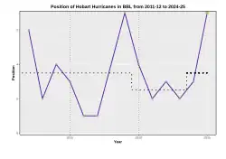 | 2014–15 | 3–5 | 5th | DNQ | Damien Wright | George Bailey[d] | Ben Dunk – 175 | Cameron Boyce – 10 | – | [13][14] |