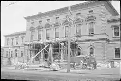 By 1925 the state of the hall's prominent portico had degenerated to the point where it was declared unsafe and major restoration work had to be undertaken.[9]