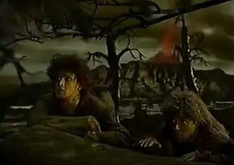 In episode 7, Mordor, Frodo and Sam travel through the Emyn Muil to Mordor and face Gollum, who they force to be their guide. It is mentioned (but not shown) that Pippin and Merry freed themselves and helped the Ents destroying Isengard and exiling Saruman; they rejoined with Aragorn, Legolas and Gimli, as well as with Gandalf, who managed to survive the fight with the Balrog. In episode 8, Tuomiovuori ("Mount Doom"), Gollum guides Frodo and Sam to the Black Gate, which proves to be impassable, and then brings them to Cirith Ungol, where Frodo is paralysed by Shelob.