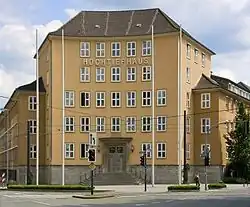 From 1933 onwards, the structures of the Third Reich influenced Hochtief's business activities.[17] Jewish members of the supervisory board were expelled under the Nuremberg Laws in 1935. In 1937, CEO Eugen Vögler joined the Nazi Party (NSDAP) and served as leader of the Construction Industry Group as well as an honorary squad leader of the Hitler Youth.[18] The construction business flourished under the four year plan, with its vast public works programme, including the Autobahn network, and the industrial build-up in preparation for war, for example the construction of a new truck factory for Opel in Brandenberg. Hochtief also worked on a new centre for Nazi rallies in Nuremberg. In 1936, it moved its Essen headquarters from the Pferdemarkt to its current location on Rellinghauser Straße. As war became imminent, the company began work on the Westwall defensive network.[19] During World War II, it worked on the Atlantic Wall defences, and a range of infrastructure projects across German-dominated Europe. Hochtief also constructed buildings for Hitler himself, notably his Bavarian Alpine retreat, the Berghof, his Wolf's Lair headquarters in Rastenburg, and the Führerbunker in Berlin, where Hitler ultimately committed suicide.[9][20]