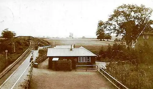 The halt consisted of a low platform of made up ground, with telephone access to the signalman at Bishops Stortford.
