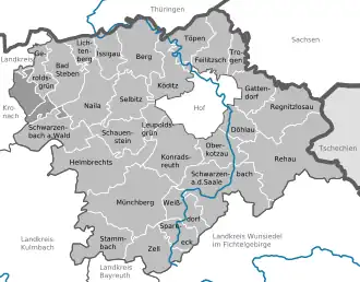 Hof (German pronunciation: [hoːf] ⓘ) is a Landkreis (district) in Bavaria, Germany. It is bounded by (from the south and clockwise) the districts of Wunsiedel, Bayreuth, Kulmbach and Kronach, the states of Thuringia (district of Saale-Orla) and Saxony (district of Vogtlandkreis), and the Czech Republic. The city of Hof is an enclave within the district, as well as being the district's administrative seat.