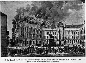 - 31 October 1848 – a fire, which started during the Vienna Rebellion, later burned part of the Hofburg Hofbibliothek (Imperial Library), destroying museum collections and notes in the Zoology-Cabinet museum.