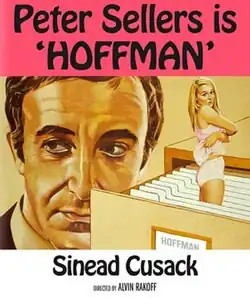 Hoffman is a 1970 British drama film directed by Alvin Rakoff and starring Peter Sellers, Sinéad Cusack, Ruth Dunning and Jeremy Bulloch.[3] It is the tale of an older man who blackmails an attractive young woman into spending a week with him in his flat in London, hoping that she will forget her crooked fiancé and fall in love with him instead.[4]
