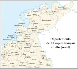 During the period when the Low Countries were annexed by the French Empire and actually incorporated into France (from 1810 to 1813), Holland was divided into départements Zuyderzée, and Bouches-de-la-Meuse. From 1811 to 1813, Charles-François Lebrun, duc de Plaisance served as governor-general. He was assisted by Antoine de Celles, Goswin de Stassart and François Jean-Baptiste d'Alphonse.[13] In 1813, Dutch dignitaries proclaimed the Sovereign Principality of the United Netherlands.
