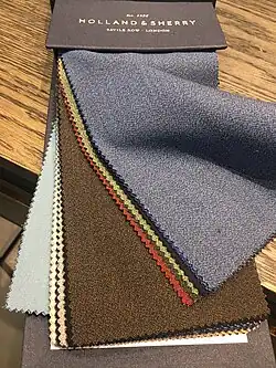 Holland & Sherry began as merchants at 10 Old Bond Street, London, specializing in woolen and silk cloths. In 1886 Holland & Sherry moved premises to Golden Square, at the time the center of the woolen merchanting trade. By 1900 the firm was exporting to many countries, it was around that time a sales office was established in New York. In the early part of the 20th century, the United Kingdom, Europe, North and South America were the dominant markets for the company. Amongst other distribution arrangements, there was a Holland & Sherry warehouse in St. Petersburg, Russia – a successful market prior to the revolution and now being successfully renewed. By 1982 the business moved to Savile Row - initially 9-10, moving to No. 31 in 2022.[4] Holland & Sherry provide fabrics to tailors and couture designers throughout the world.[5]
