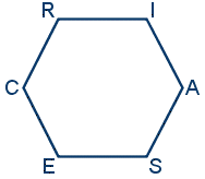 Holland originally labeled his six types as "motoric, intellectual, esthetic, supportive, persuasive, and conforming".[4] He later developed and changed them to: "Realistic (Doers), Investigative (Thinkers), Artistic (Creators), Social (Helpers), Enterprising (Persuaders), and Conventional (Organizers)".[9] Holland's six categories show some correlation with each other.[10] It is called the RIASEC model or the hexagonal model because the initial letter of the region is equal to R-I-A-S-E-C when it is expressed as a circle connecting the regions of high correlation. Professor John Johnson of Penn State suggested that an alternative way of categorizing the six types would be through ancient social roles: "hunters (Realistic), shamans (Investigative), artisans (Artistic), healers (Social), leaders (Enterprising), and lorekeepers (Conventional)".[11] Holland offers full definitions of each type in his book, Making Vocational Choices: A Theory of Vocational Personalities and Work Environments (Third Edition) (1997).[12]