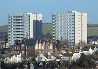 Hollingdean is a district in the city of Brighton & Hove. The Ward is called Hollingdean and Stanmer with a population of 15,681 at the 2011 Census.[1] By the time of the local authority elections in May 2023 the Ward boundary had been changed and it is now called Hollingdean and Fiveways.[2] After the boundary change, the new Ward had an electorate of 10,977.[3] Hollingdean is in effect the older part of Hollingbury. It is bounded by Ditchling Road to the west, the Round Hill area to the south, and Lewes Road and Moulsecoomb to the east. It is a mainly residential area, with many council houses to the east and low-rise flats in the central part, with late 19th and early 20th-century terraced houses towards Fiveways, and some railway land, light industry, and warehousing.