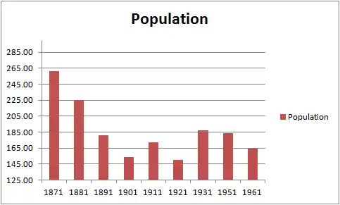 The population in Hollington is currently recorded in the census along with other nearby settlements; as a result it is hard to determine the current total population. During the last census that Hollington was individually analysed in 1961 it was at 164 people; much lower than roughly 90 years before, when it was at 261.[3] Of the 212 people currently living in Hollington 149 are between 16 and 74 and of those people 95 people are economically active 28 are in the manufacturing industry and 72[4] are in the service industry, likely working in the nearby towns and cities.