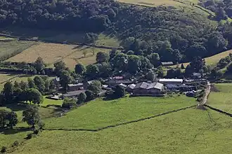 According to the English Place-Name Society, the name Hollinsclough comes from Howel's ravine.[4] Various documents, including tenancy records for the Manor of Haysgate in the County of Stafford, from 1651 to 1850 give the following variants of the name. Hollescloughe (1651), Holling Clough (1750), Hollingclough (1767), and The Liberty of Hollinsclough (1769). The population list for 1769 has 112 names. The 1851 Census has 211 male and 189 female inhabitants.[5] Like many other such villages dependent upon hill farming, the population has declined rapidly since then.