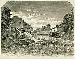 Farmers grew corn, potatoes and hay in the sandy loam. Water powered mills were built along the Saco River at Hollis village, Bar Mills, Moderation Falls (opposite West Buxton), North Hollis and Bonny Eagle Falls. These included lumber mills, a spool factory, a woodturning mill, a wooden box factory and the Saco River Woolen Company. The Portland and Rochester Railroad crossed the southern part of the town.[5]