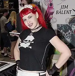 She is the colorist for husband Jim Balent's Tarot: Witch of the Black Rose[7] as well as the model for Tarot herself.[8] She has frequently been shown on the photo covers dressed as Tarot and as Catress from the 3 Little Kittens comics and is the model for the official Tarot photo calendar.
