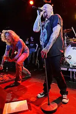 The band was formed in 2013 by the frontman, Steph Honde, a French singer, songwriter and multi-instrumentalist (vocals, guitar, piano, bass guitar). Stéphane Honde (known professionally as Steph Honde) was born on 5 September 1975 in Manosque, France.[2] Honde achieved great success in France as a guitarist. He started his musical career as the frontman of the French band Mamooth.[2] Later Honde garnered a reputation as a guitar virtuoso when playing in the French hard rock band Café Bertrand in 2004-2010.[3] Honde recorded two albums with Café Bertrand: Les Airs Empruntés (2005) and L'Art délicat du Rock'N'Roll (2008). He was the sole songwriter of the latter. Both albums were critically acclaimed and commercially successful.[3] Café Bertrand was chosen to be the opening band for the Deep Purple European leg of the Rapture of the Deep tour which included 36 dates across Europe in October and November 2006 and another 12 dates in France in March 2007.[4] Café Bertrand played at giant stadiums such as Stade de France, with an audience capacity in excess of 80,000. In 2009 Café Bertrand was the support band for two AC/DC shows in France during the Black Ice World Tour: on 9 June 2009 at Stade Vélodrome in Marseille and on 12 June 2009 at Stade de France in Paris.[5] In July 2009 Café Bertrand played at the Montreux Jazz Festival.[6]