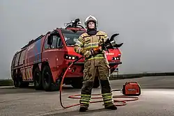 ![]() Firefighter with a Holmatro hydraulic spreader | |