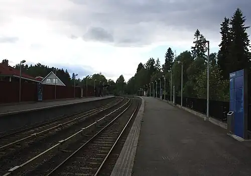 Holmen is a station on the Røa Line (line 2) of the Oslo T-bane system. It is located between Makrellbekken and Hovseter and serves the neighbourhood of Holmen. The station is 6.1 km from Stortinget. Holmen was opened on 24 January 1935 when the line was completed to Røa. The station is at an altitude of 119.4 metres above sea level.[1] The station is located in a mainly residential area.