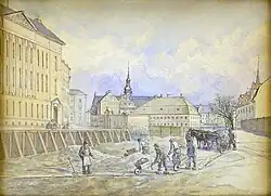 Several public buildings was situated along the canal, including the General Commissioner's Office (Generalkommissionariatet).