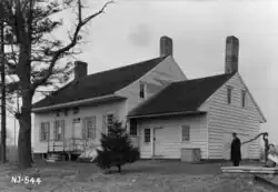 The Holmes–Hendrickson House is located at 62 Longstreet Road, adjacent to Holmdel Park, in Holmdel Township of Monmouth County, New Jersey, United States. The farmhouse was built around 1754 by William Holmes, a descendent of Obadiah Holmes and Cornelius Hendrickson. William sold the property to his maternal first cousin, Garret Hendrickson, shortly after construction. The property changed hands several times after Garret's death in 1801, and was eventually purchased by Bell Labs in 1929. At risk of demolition during construction of the Bell Labs Holmdel Complex, the structure was sold to the Monmouth County Historical Association, who relocated the building to its present location in 1959. Ownership of the structure was transferred in 2019 to the Monmouth County Park System.[3] The house is one of several historic properties owned by the Monmouth County Park System and is operated as a historic house museum by MCPS in cooperation with MCHA.[4]