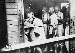 On the evening of the next day, 28 June 1941, army groups, the local police, gendarmes, German soldiers attached to the Romanian army, and ad-hoc mobs incited by the media and the secret services descended upon the Jewish population of the city which was accused to have pro-Soviet sympathies, had armed itself and was attacking the army, and even had signalled enemy planes where to attack. At 9 pm, shots were heard throughout the city and pillaging, rape, and murder of the Jews started. On 29 June the survivors where taken to the train stations, having to walk through the streets filled with dead bodies. There, they were forced into train cargo wagons.[21] In the heat of the summer, with no water or food, and crammed against each other, most of them died before reaching the destination. A survivor recalled:
