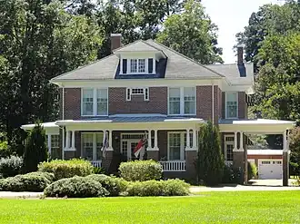 Holoman–Outland House is a historic home located near Rich Square, Northampton County, North Carolina. It was built in 1920, and is a two-story, Colonial Revival / American Foursquare style brick dwelling with a one-story kitchen wing. It has a hipped roof with hipped dormer, full-width one-story front porch with Doric order columns, porte-cochère, and a two-level squared bay with a modified Palladian window. Also on the property are the contributing cow shed (1920) and pump house and smokehouse (1920).[3]