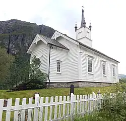 Holsen Church (Norwegian: Holsen kyrkje) is a parish church of the Church of Norway in Sunnfjord Municipality in Vestland county, Norway. It is located in the village of Holsen. It is one of the two churches for the Holsen og Haukedalen parish which is part of the Sunnfjord prosti (deanery) in the Diocese of Bjørgvin. The white, wooden church was built in a long church style in 1861 using designs by the architect Jacob Wilhelm Nordan. The church seats about 200 people.[1][2]