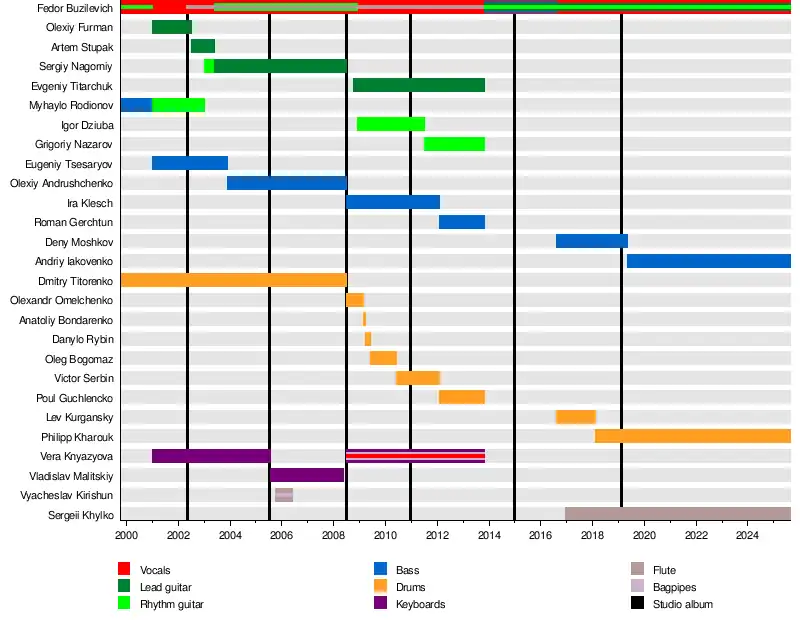 - Vera Knyazyova – keyboards, vocals (2001–2005, 2008–2013), lead vocals, bagpipes (2008–2013)