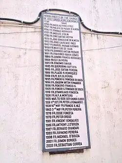 | Assistant priest(s) | Fr Norbert D’Souza,[2] Fr. Philip Falcao , Fr.Milton Gonsalves, Fr Xavier Rodrigues[3] |