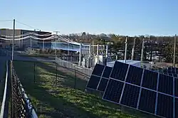 Holyoke Gas & Electric (HG&E), formally known as the City of Holyoke Gas & Electric Department (HGED), is a municipal electric, gas, and telecommunications utility primarily serving Holyoke and Southampton, Massachusetts, one of two in Massachusetts which provide all three services.[1][b] Founded in 1902 with the purchase of gas and electric plants from the Holyoke Water Power Company, the municipal corporation launched its first fiber optics communications services in 1997. On December 14, 2001 the City of Holyoke purchased the majority of the remaining assets and operations of the Holyoke Water Power Company from Northeast Utilities and as a result the municipal utility assumed control of the Holyoke Dam and Canal System and an electric distribution system serving industrial electric customers in the flats neighborhood. The utility discontinued district steam service to conserve energy used in aging infrastructure in September 2010.[2][3] Using hydroelectric power generation in tandem with a series of solar panel facilities, the utility has among the lowest rates in the Commonwealth,[4] and as of 2016 between 85% and 90% of the city's energy output was carbon neutral, with administrative goals in place to reach 100% in the next decade.[5][6]