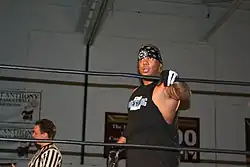 Erazo is a member of the large Puerto Rican community in New York, colloquially known as "Nuyoricans". He initially wrestled as The Latin Terror, a reference to his Latin American ethnicity. However, Erazo grew bored with the gimmick in 1995 and decided to create a new character based on his own past. He had been a gang member as a youth, and he incorporated this into the Homicide character, taking his ring name from an episode of America's Most Wanted where a man was arrested for the crime of homicide.[3] Erazo has subsequently stated that he represents both "New York and Puerto Rico", frequently implementing the flag of Puerto Rico into his wrestling apparel and often carrying it unmodified to the ring.[157] Outside of professional wrestling, Erazo was married in 1994 and is the father of two children, a son and a daughter.[1]