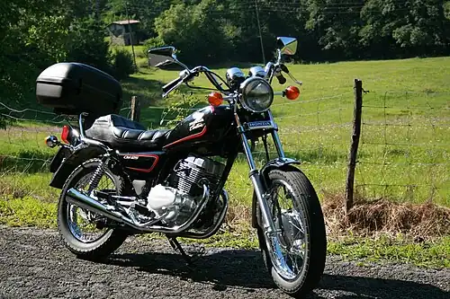 The Honda CM125 is a parallel twin cylinder air-cooled OHC four-stroke cruiser motorcycle made by Honda from 1978 to 2002.[1] It had a top speed of 65 mph (105 km/h).[2] The CM125C engine combines the single carburettor of the squat Honda CD125 Benly motor with the tall cylinder head and five-speed, gearbox of the sportier Honda 125 Super Dream.[2]