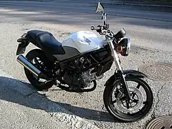 Introduced in 1997, the newer VTR250 has been compared to the Ducati Monster in appearance, with a trellis frame, V-twin engine, and initially a similar instrument layout, with no tachometer. The transmission was changed from six-speeds to five. In 2003, the instrument panel was updated to include a tachometer on the right side and move the warning lights and indicator-on to below both analogue displays. The 2009 model VTR250 saw the first major design changes since the instrument panel update. With a redesigned rear end and midsection, the 2009 model also has electronic fuel injection.[1][2]