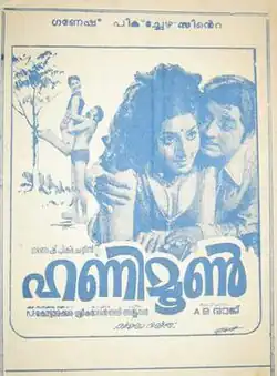 Honeymoon is a 1974 Indian Malayalam film, directed by A. B. Raj and produced by K. P. Kottarakkara. The film stars Prem Nazir, Jose Prakash, Sankaradi and Alummoodan in the lead roles. The film had musical score by M. K. Arjunan.[1][2][3]